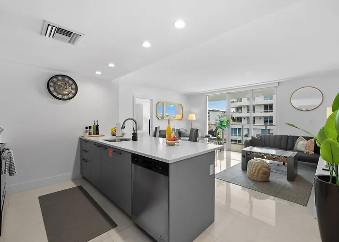 Luxury Condo With Rooftop Pool - 5-Min To Beach villa has an equipped kitchen with coffee and tea making equipment, a stovetop, and kitchenware included. Offering South American specialties, restaurant Vasalissa Chocolatier is 16 minutes' walk away. Miami Airport train station is 23 km away, while the nearest bus stop is Harding Avenue & 9700 Block, located not far from Luxury Condo With Rooftop Pool - 5-Min To Beach villa.